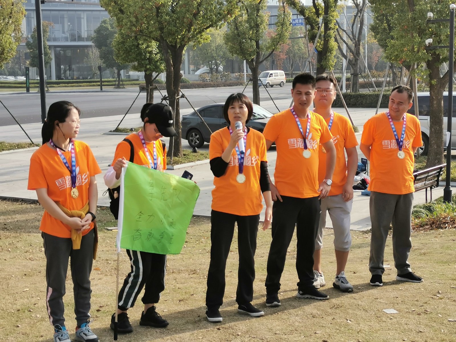 13點(diǎn)07分,整個(gè)毅行過(guò)程中開(kāi)掛的“超越隊(duì)”成為第一隊(duì)到達(dá)終點(diǎn)的團(tuán)隊(duì),歷時(shí)4小時(shí)30分。緊隨第2名是“飛豬隊(duì)”全員到達(dá),歷時(shí)4小時(shí)45分。