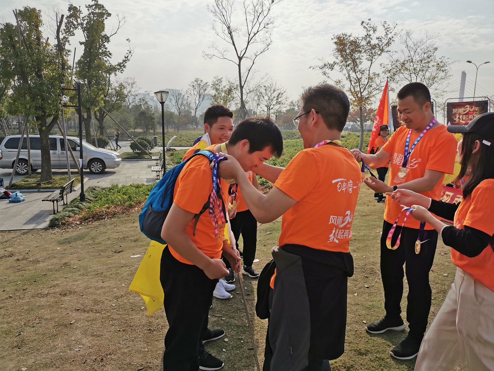 30公里,說(shuō)長(zhǎng)不長(zhǎng),說(shuō)短不短,但對(duì)于大部分第一次參加毅行的伙伴來(lái)說(shuō)卻算是不小的挑戰(zhàn)。奧體中心出發(fā),跨越九堡大橋,抵達(dá)城市陽(yáng)臺(tái),再跨西興大橋,最后回到奧體中心,一線錢塘江景,一路磕絆……因?yàn)橛袌F(tuán)隊(duì)的陪伴,再難都能堅(jiān)持。